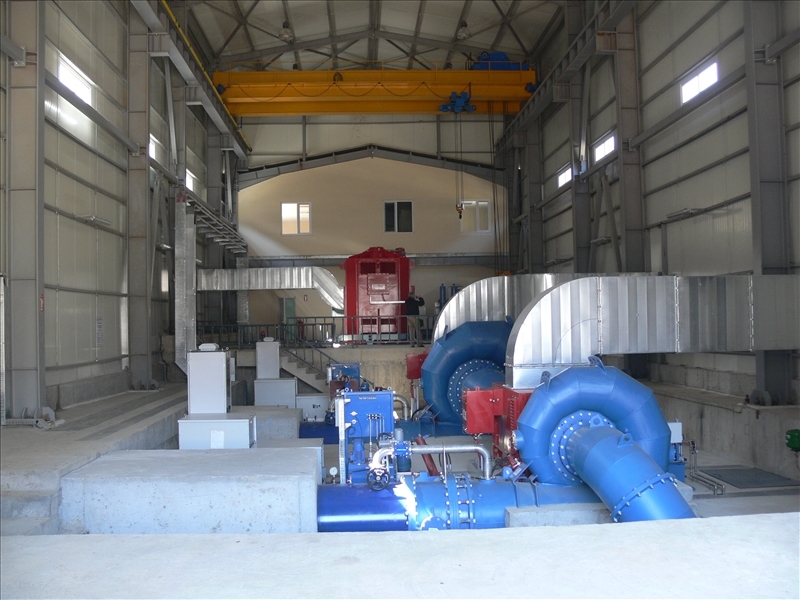 There exist 2 horizontal axis Francis turbine manufactured by Kossler inside power house where installed powers are 1.27 MW and 3.25 MW separately and there exist one vertical axis 6 jet pelton turbine manufactured by Kossler company inside the same power house where installed power is 5.10 MW.