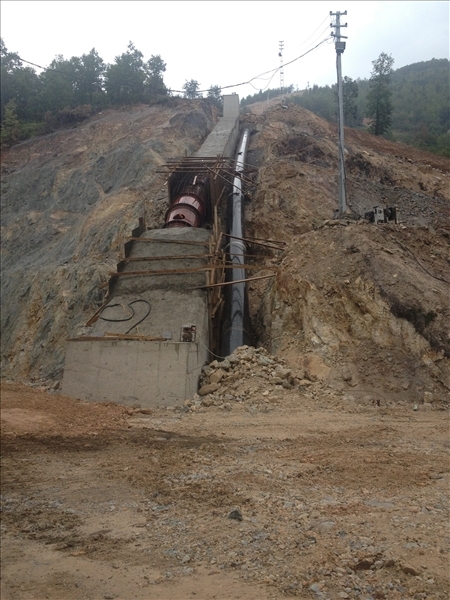 Diverted creek flow is transferred to headpond by corrugated pipelines and conveyed to power house by buried penstock. There exists two vertical six jet Pelton turbines manufactured by VapTech company inside power house where total installed power is 18.20 MW.